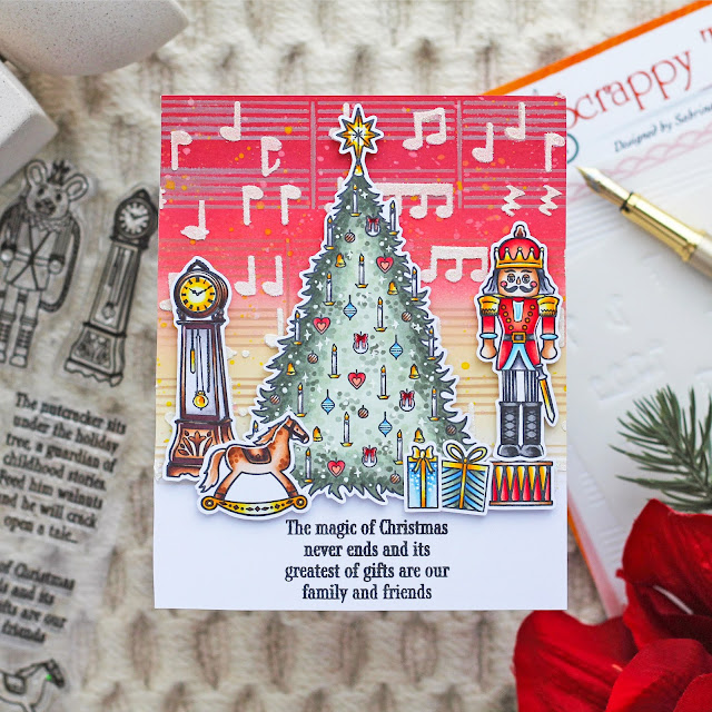 The second and no less significant card for me. I used here gorgeous Nutcracker Ballet stamp set. As you know, it was the famous Russian composer Tchaikovsky who wrote his 71 compositions - "The Nutcracker" ballet. So this is another special theme for me.
